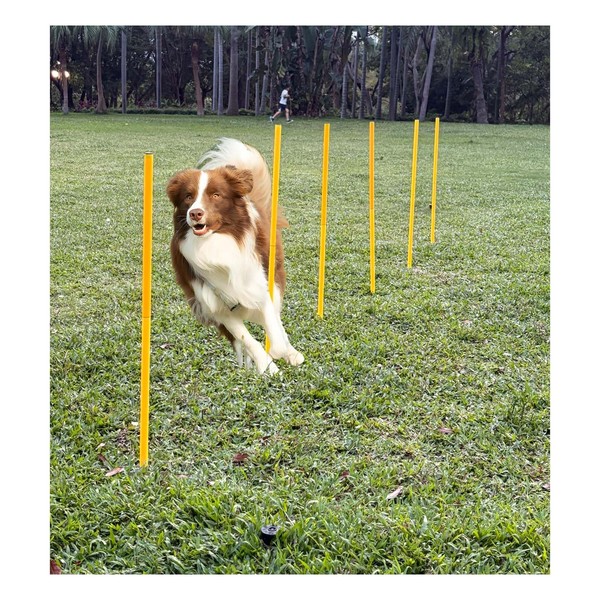 - VERSATILE TRAINING SET: Complete dog agility equipment featuring 6 weave poles and an adjustable jump bar for developing agility, coordination and obedience