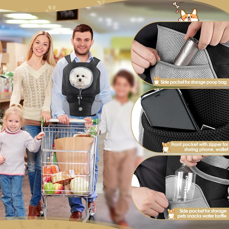 Dog Backpack Carrier, Front Chest Dog Carriers for Small Dogs, Pet Carrier Backpack with Multi-Pocket, Adjustable Neck Hole, Breathable Mesh Dog Front Carrier for Travel Hiking Cycling (Small)