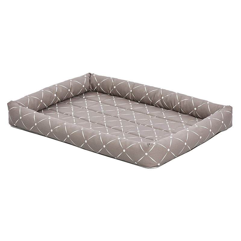 - Stylish bolster dog bed designed to fit most 30" standard dog crates, mushroom / white pattern pet bed measures 29L x 19W x 2.32H inches & ideal for medium dogs