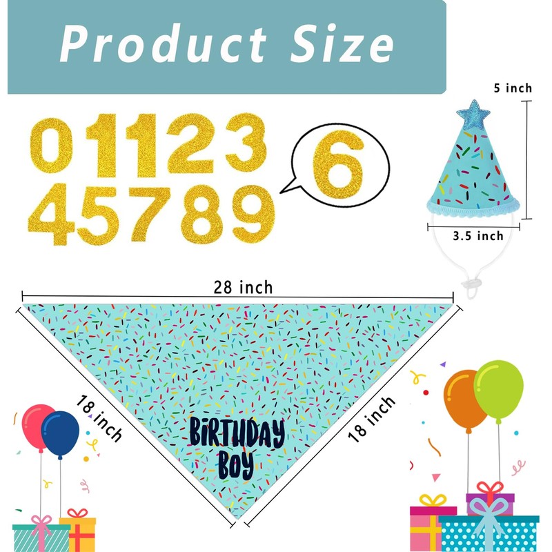 - Size and Quantity: The package contains a about 28 x 18 inches scarf, a hat and a set of numbers, bandanas and hat were full of birthday atmosphere, making your pets more fashion and lovely.