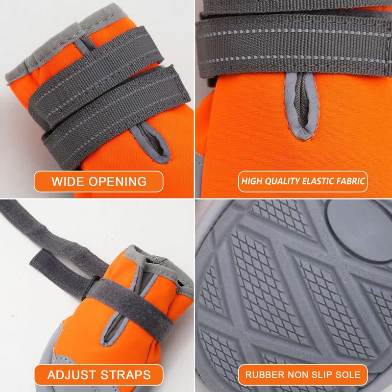 • 【ADJUSTABLE & REFLECTIVE STRIPS】These dog boots are easy to put on and take off, and the double straps can be adjusted with long straps to fix. When putting on dog shoes, please fasten the long belt, which can effectively prevent the shoes from falling off. At night, reflective strips on dog shoes make it easier to find your dog.