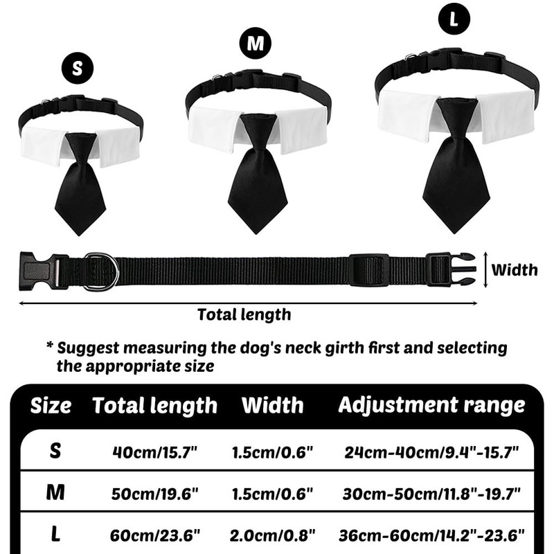 - Adjustable: the neck circumference can be adjusted. The dog tuxedo tie is recommended to measure the dog's neck circumference before purchase and choose the appropriate size according to the size of the dog.