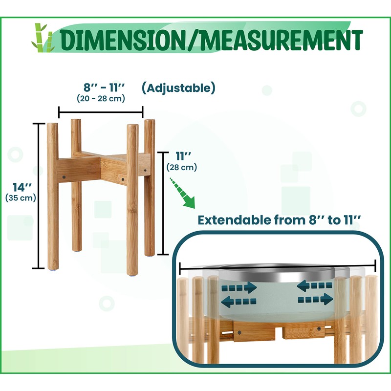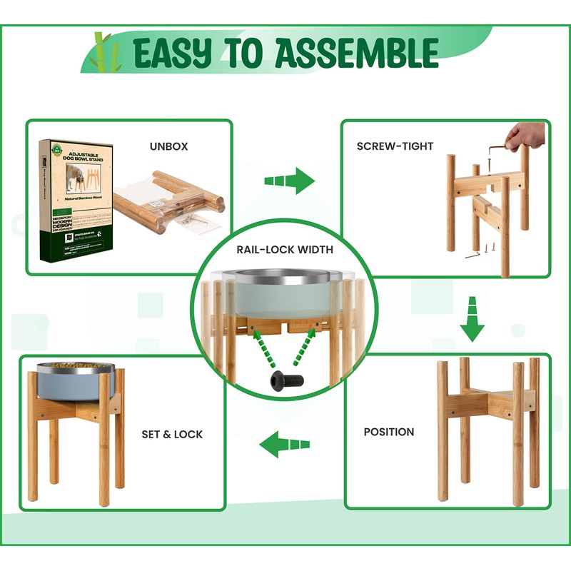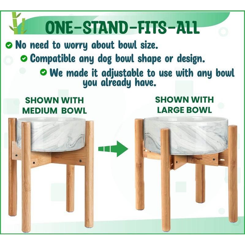 - Kitchen-grade natural bamboo – Made of sustainable, organic wood materials, heat-treated and cleaned from impurities ideal for pet or kitchen use; better than plastics that may fade or metal stands that may rust overtime