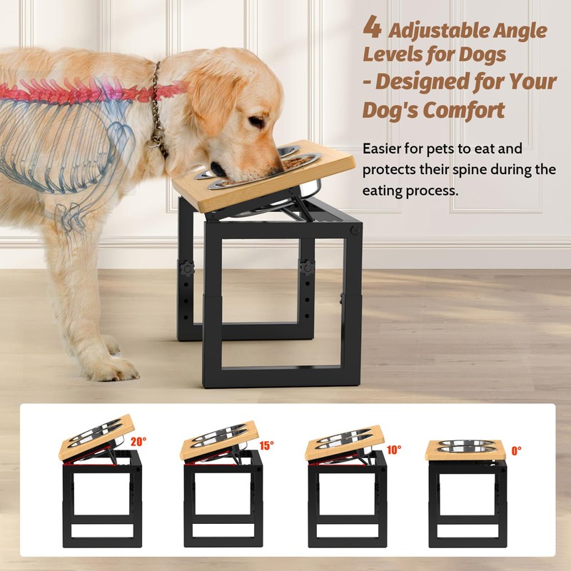 - đ 4 Adjustable Heights (7.7"â10.9") + Tilt (0°â20°) â Customize the perfect angle and height for your dogâs size and comfort. This dog bowl is designed to accommodate pets of different sizes and ages, ensuring a comfortable dining experience as your pet grows.