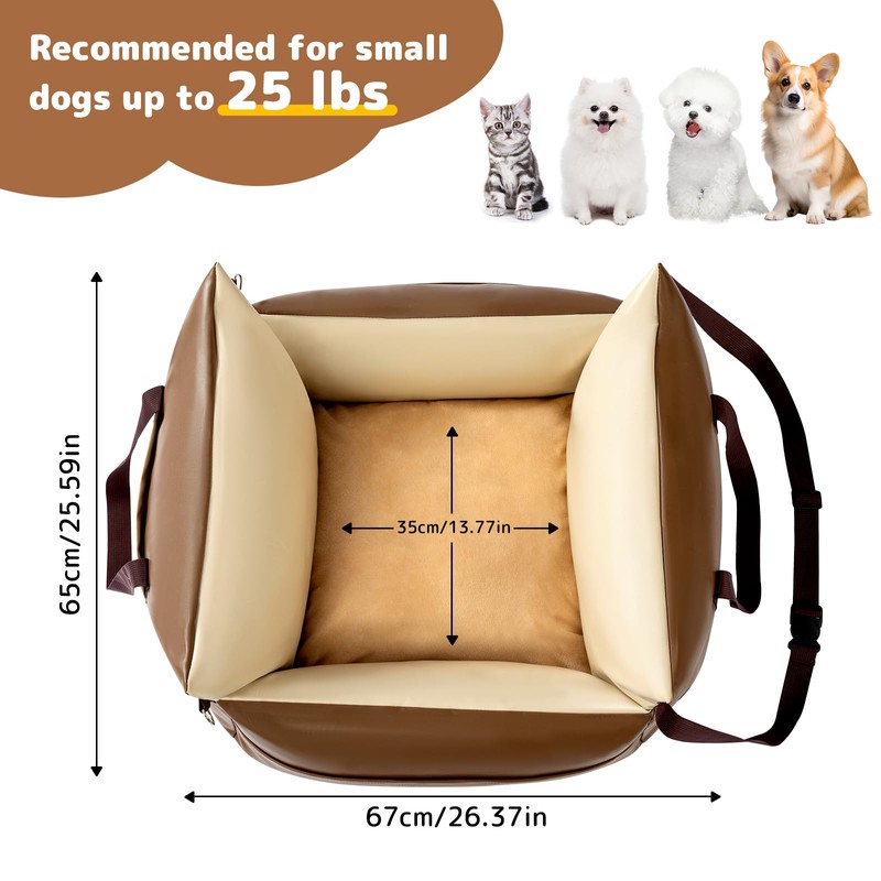 Dog Car Seat for Small Dogs Waterproof Travel Dog Bed for Car Backseat Pet Car Seat(Khaki, Under 25 lbs)