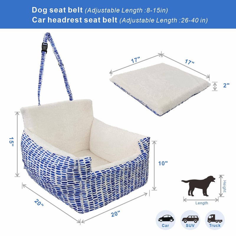 - TRAVEL WITH CONFIDENCE - 20x20 inch pet car seat surdace is made of super soft short plush fabric, not afraid of scratching. The interior is filled with high-density sponge, which can effectively reduce the impact of road bumps and bring your dog a comfortable ride.