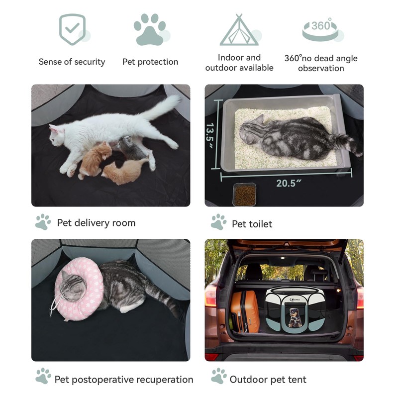 Siedihit Dog Cat Playpen, Puppy Pet Playpen Indoor for Small Dogs Tent Crates Cage Outdoor, Portable Pop Up Dog Kennel Playpen with Carrying Case for Dogs/Cats/Rabbits, Removable Zipper Top, Grey
