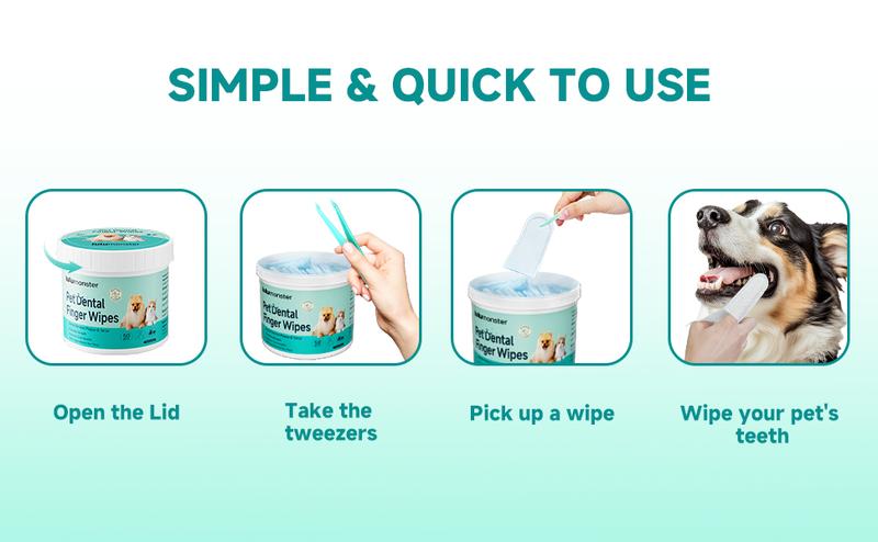 Gentle Clean & Fresh Breath: The pet dental finger Wipes to be effective gently wipe dirt your pet's teeth and gums, maintaining pets' teeth hygiene. It also helps to improve dog's breath and providing a solution for bad breath issues.