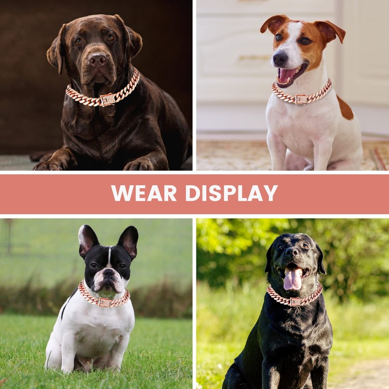 - 🐶【Bling Design】The rose gold dog chain collar has a ring full of zirconia diamonds, hand set by artisans. it's gleaming and brilliant during the day or at night.