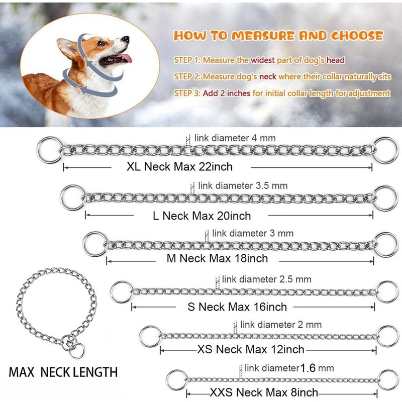 - Easy Control: Slip chain allows quick leash attachment for controlled walks and commands.