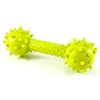 Dog Chew Toy Dumbbell, Durable Rubber, Lime Green, Blue, Pink, Playful, with Bell (Lime Green)