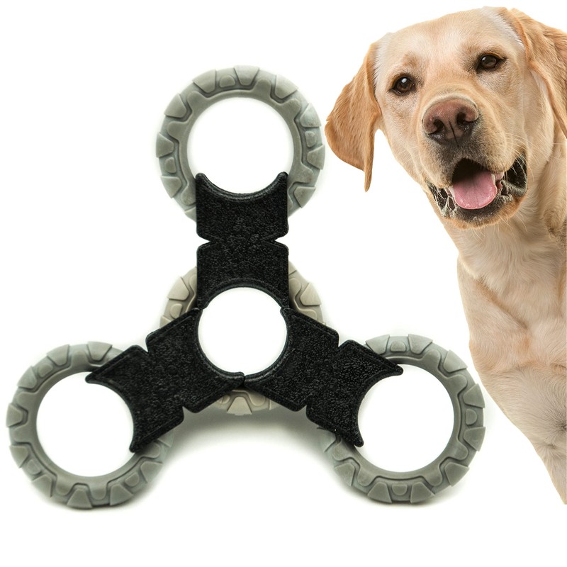 Dog Chew Toy | Rubber Dog Chew Bone Ring Dumbell | Durable Squeaky Dog Bones Pet Chew Tooth Cleaning Ring Toy | Puppy Toys Medium Dog Stuff | Tug Dog Chews for Teeth (Grey, Tug Toy (4 Rings))
