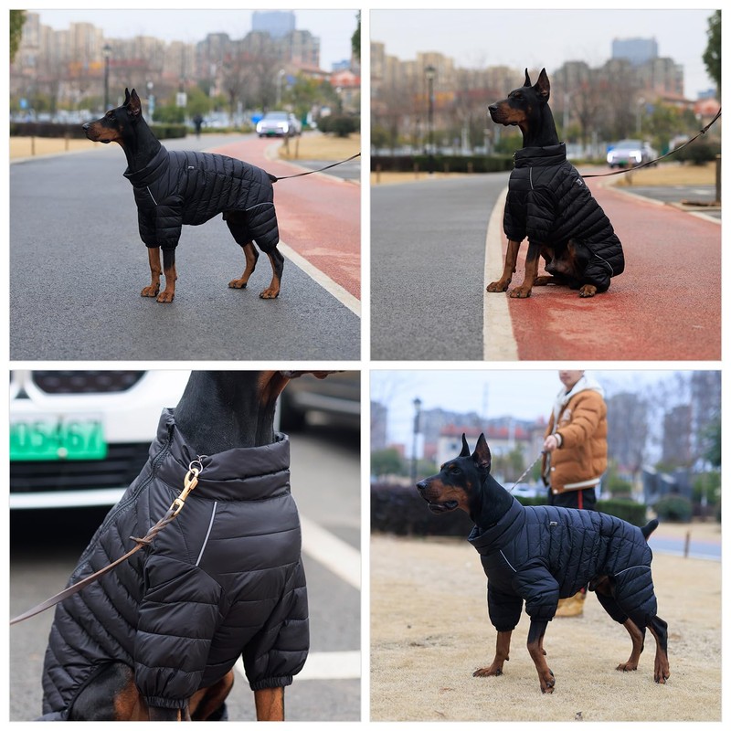 Dog Coat Dog Warm Jacket, 4 Legs Covered Waterproof Windproof Reflective Warm Dog Vest, Zippered Adjustable Outdoor Dog Snow Jacket for Small Medium Large Dogs Black XXXXL