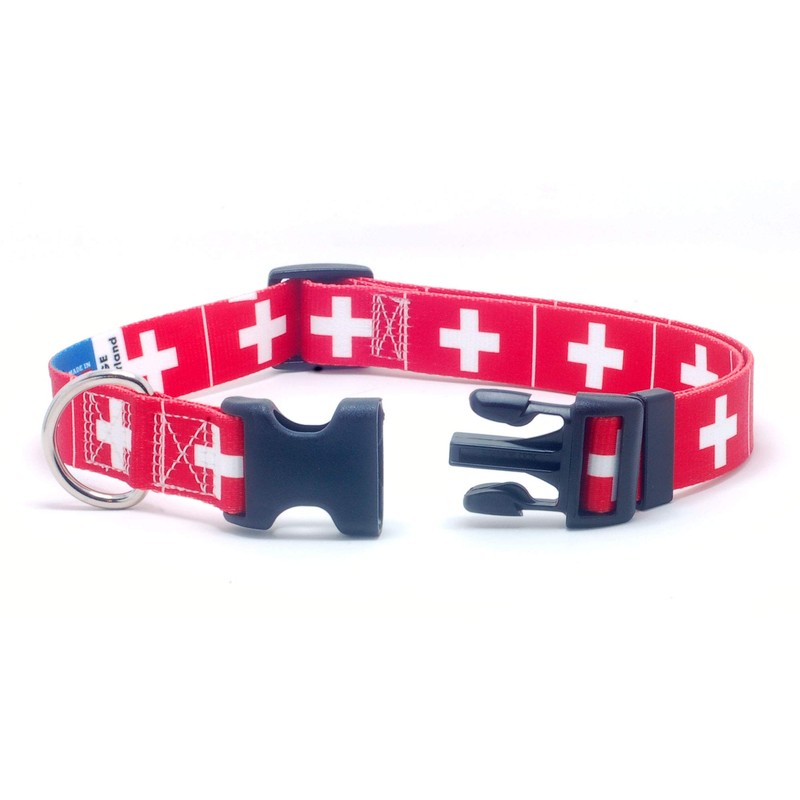 Do you or your pup have a special connection to Switzerland? Awesome! The Swiss flag dog collar and leash set is an great way to celebrate that. These cool dog collars are fun and they'll make your doggy feel even more special. They're great for sporting events, holidays, festivals and rugged enough for everyday use. They make super unique gifts too!