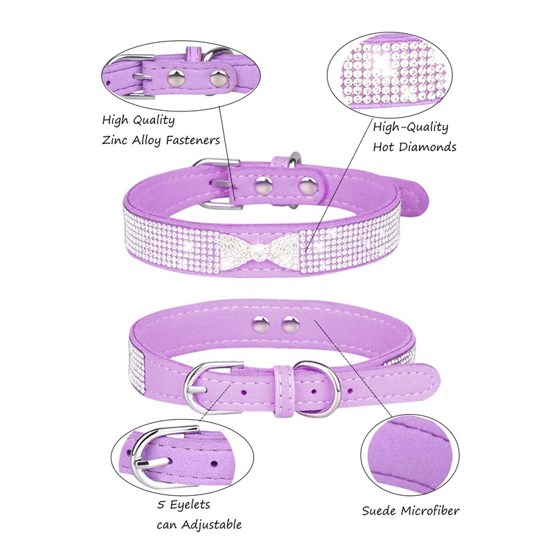 Dog Collar for Small Dogs, Adjustable Leather Suede Bling Dog Collars,Pink Dog Collar Cat Collar, Rhinestone Dog Collar (S, purple4)