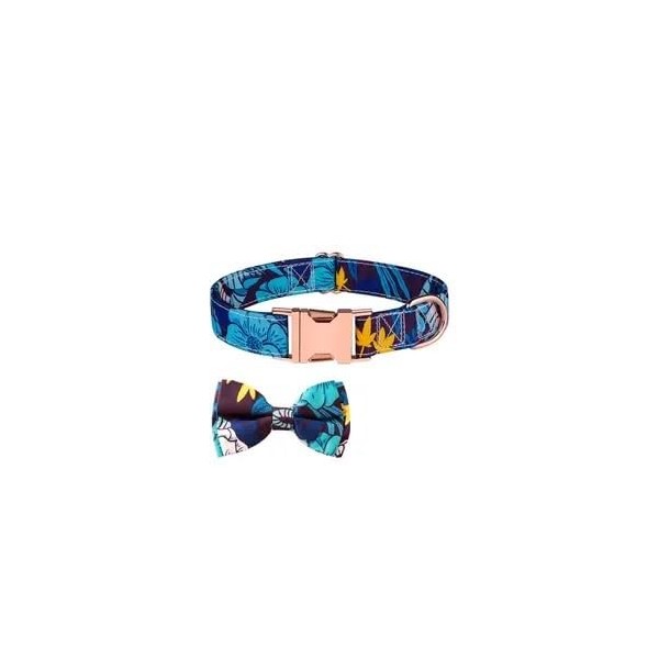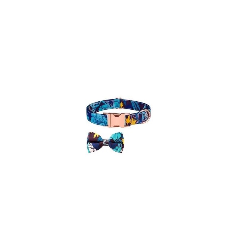 Dog Collar with Adjustable Bow Tie (Blue Floral, X-Large)