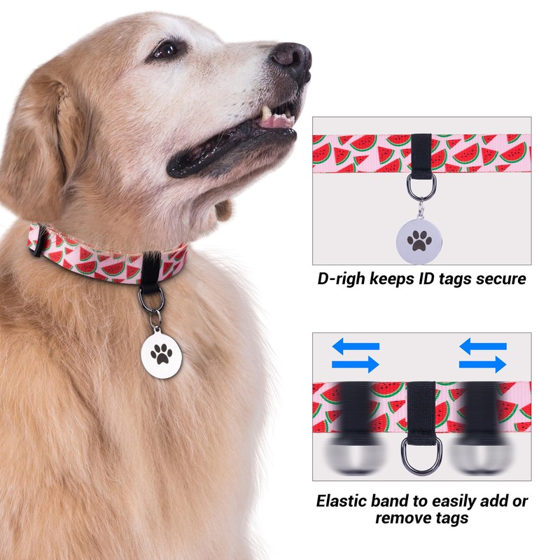 • Personalized Design: The compact D-ring is specifically designed for attaching dog charms, tags, pendants, or accessories, adding a touch of individuality to your pet's collar. With an adjustable buckle, you can easily customize the size to fit your dog comfortably without causing any collar para perrosdiscomfort, even when worn all day long.Elastic design for easy put on and take off.