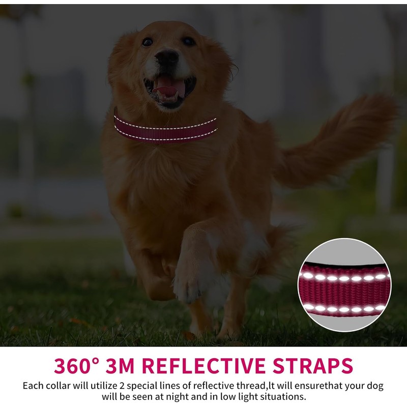 - 🐾 🐕 【Glow-in-the-Dark Dog Collar】 This dog collars for medium dogs features two reflective threads that glow brightly in the dark, making it easy to spot your dog during night walks. It enhances your pet's safety by improving visibility, especially on the roads.
