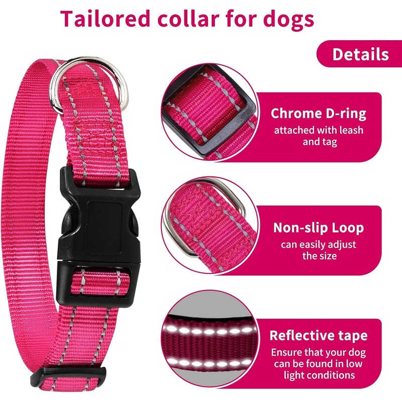 Dog Collars for Medium Dogs,Reflective Dog Collar,Pink Dog Collar,Adjustable Safety Nylon Collars with Quick Release Buckle for Medium Dogs,Pink,3/40" Width 4