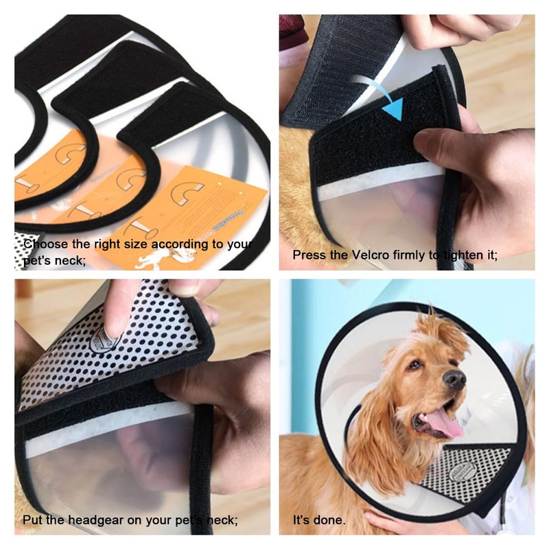 A dog cone collar can protect your pet from licking or chewing wounds after surgery. This dog cone collar is light and soft, does not affect your pet's eating, drinking and playing, and solves many worries for you.