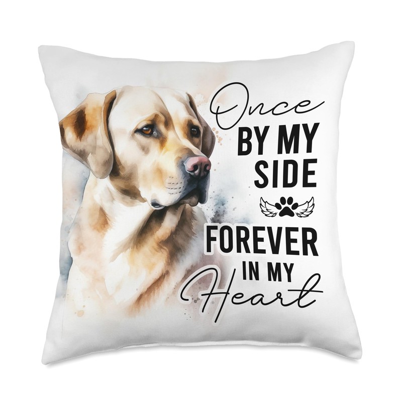 - Pet death sympathy gift pillow for loss of a yellow Labrador. Once by my side, forever in my heart - paw print with angel wings. Express your support for a loved one's pet loss with this meaningful and stylish commemorative present.