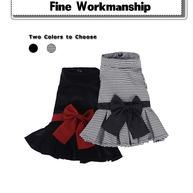 - FASHION AND BEAUTY: The dress uses houndstooth pattern on the outside, and a big bowknot on the back for the decoration, unique style making your pet girl more attractive and pretty whether going out or playing at home.
