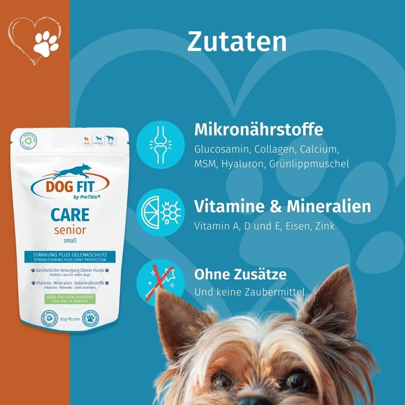 - 🐶 DOG FIT by PreThis CARE senior - Von Hundehaltern für Hundehalter*innen und empfohlen von Tierärzten und Tierheilpraktikern. Wir sind für die Gesundheit Deines Hundes da - immer wenn Du uns brauchst.