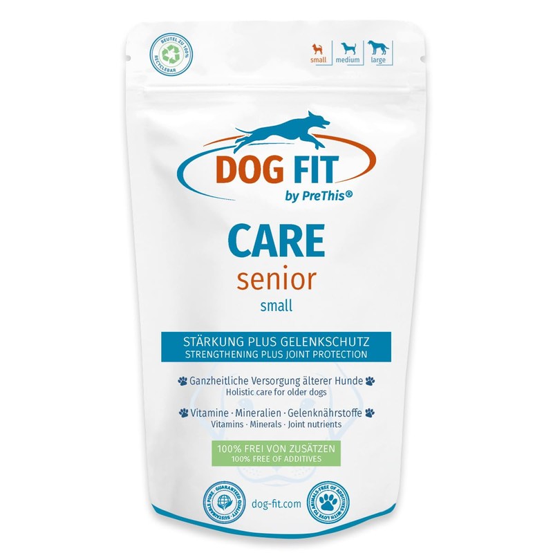 DOG FIT by PreThis® Care Senior I Aufbaupräparat für alte Hunde Plus Gelenkschutz & Vitamine & Mineralien I Futterergänzung frei von Zusätzen I small
