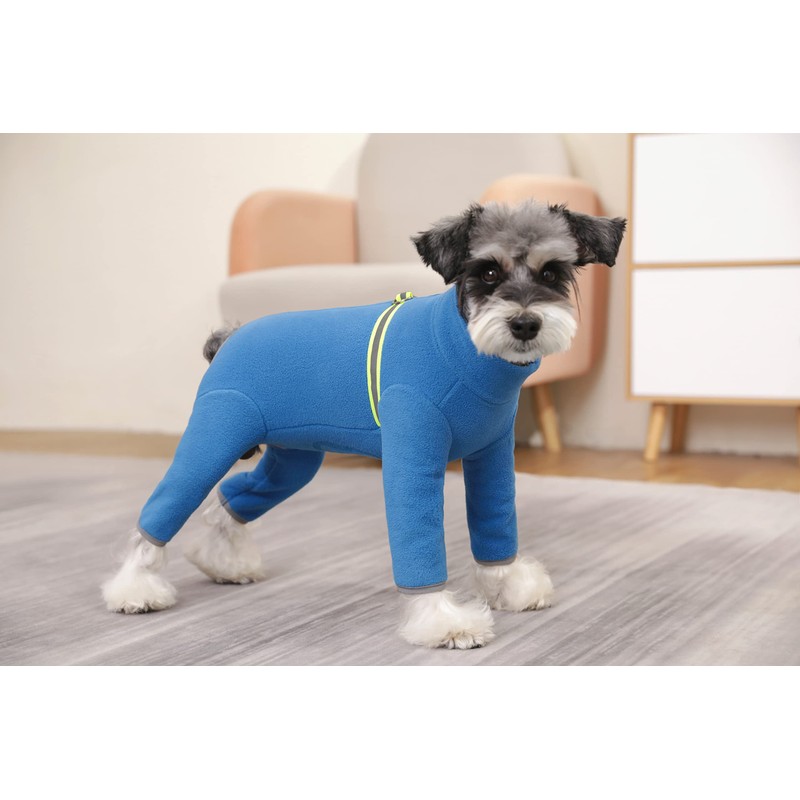 Dog Fleece Warm Clothes, Puppy Winter Long-Sleeved Four-Legged Clothes, Puppy Onesie With D Ring,Cold Weather Coats For Small To Medium Dogs_M(Blue)