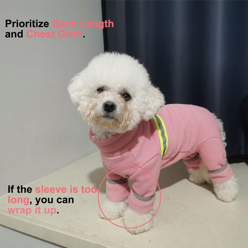 - Back Reflective Strip Design: The dog four-legged pajamas has a reflective strip on the back, which is very suitable for walking in the cold at night, it can help you find your dog at night, and keep your pet safe to a certain extent.