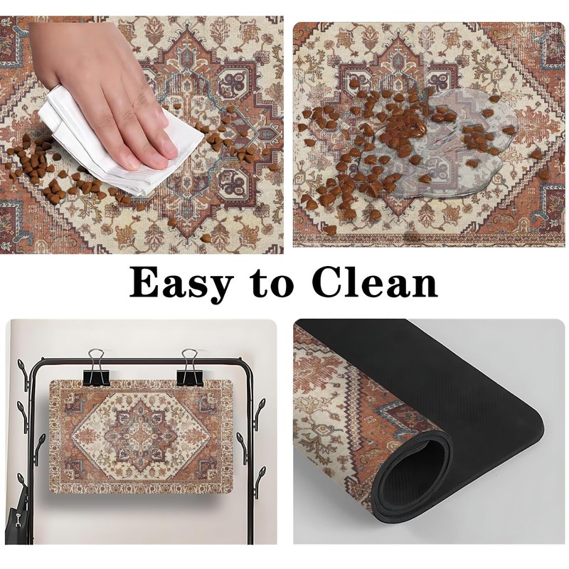 Dog Food Mat for Floors, Absorbent and Quick-Drying Pet Cat Food Mat,Anti-Fouling and Easy-to-Clean Pet Feeding Mat,Dog Bowl Mats for Messy Drinking Water Bowls.17x32inch Bohemia Style