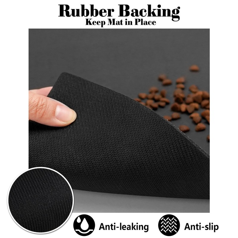 - 🐕Pet Friendly: Most pets would like to sit on the safe comfortable cat food mat, it can also be cat litter mat, pet sleeping mat. It's perfect to use the dog dish mat under automatic feeder, which is a great gift for your puppy and animal lovers.