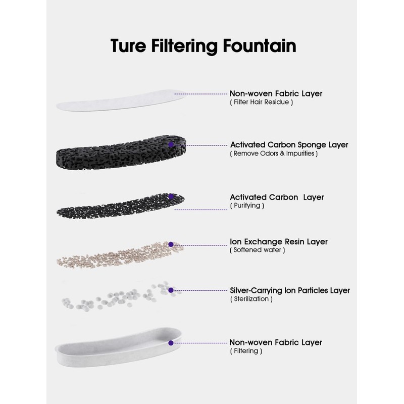 - Usage Method-please rinse the carbon filter in water for 5 minutes thoroughly before use, then install the cat fountain filter into the cat drinking fountain.