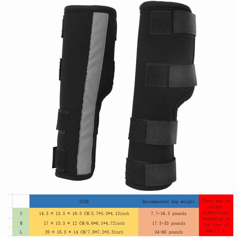 - 【Notice】Due to the different types of dogs, some dogs have very light weight but thick legs, so it is best to measure the leg circumference of the dog before buying, then you will not buy the wrong size. In addition, if the dog happens to reach the maximum size, it is recommended that you buy a protective belt that is one size larger. For example, if your dog is just 16.5 pounds, it is recommended that you buy the size of the size M.