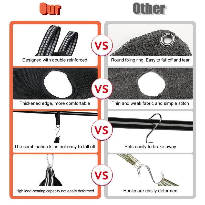 This pet grooming Hammock kit has the same function like grooming table, grooming arm or doggie lift. It can fix your pet in a comfortable and stable way. Stop chasing and fighting with your pet!
