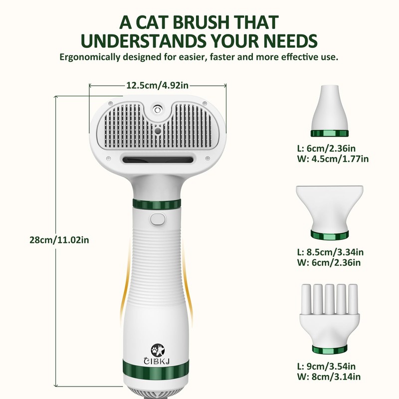 - 【SUPER FIT PET BRUSH】Cat Drying Steam Brush features three adjustable air speeds to quickly dry your cat's fur and avoid the discomfort and health problems associated with wet and cold. This multi-functional cat steam brush is equipped with four air vents, which can be applied to a wide range of blow-drying requirements (long hair, short hair, curly hair pets). dog hair dryer's four air vents can also be used to blow different shapes as well as effects