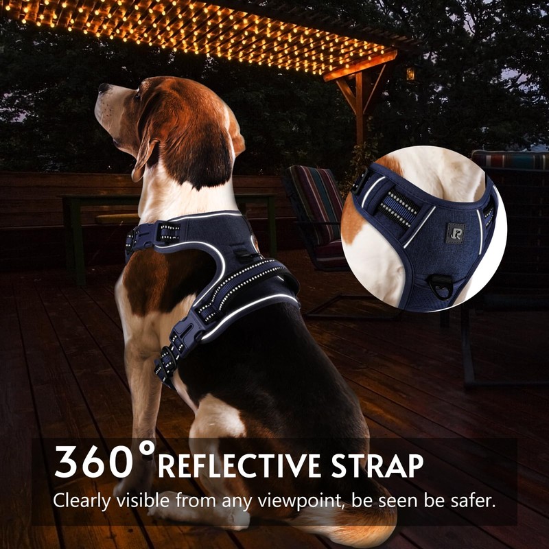 - Safe and perfect control - Super bright reflective strips ensure a safe walk in the dark and at night. A soft, neoprene padded, sturdy handle on the back helps you grab and control your dog in an emergency, and also helps them get into the car or on the stairs. Please measure your dog before purchasing to get the right size!