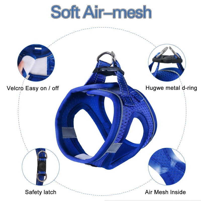 - [REFLECTIVE DOG HARNESS]: small dog harness with Magic Tape, buckle and double D-rings work together protect your pet in three layers of security. The 360°highly reflective strips provide good visibility in the dark.
