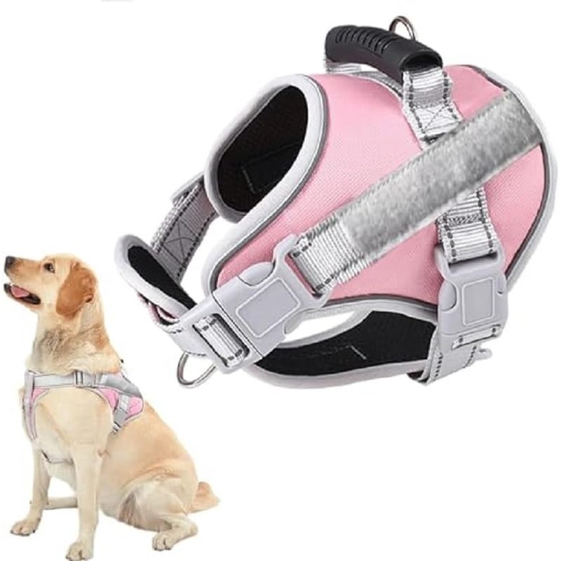 Dog Harness Reflective Heavy Duty Adjustable Pet Vest Harnesses for Small Medium Large Walking (Pink, XL)