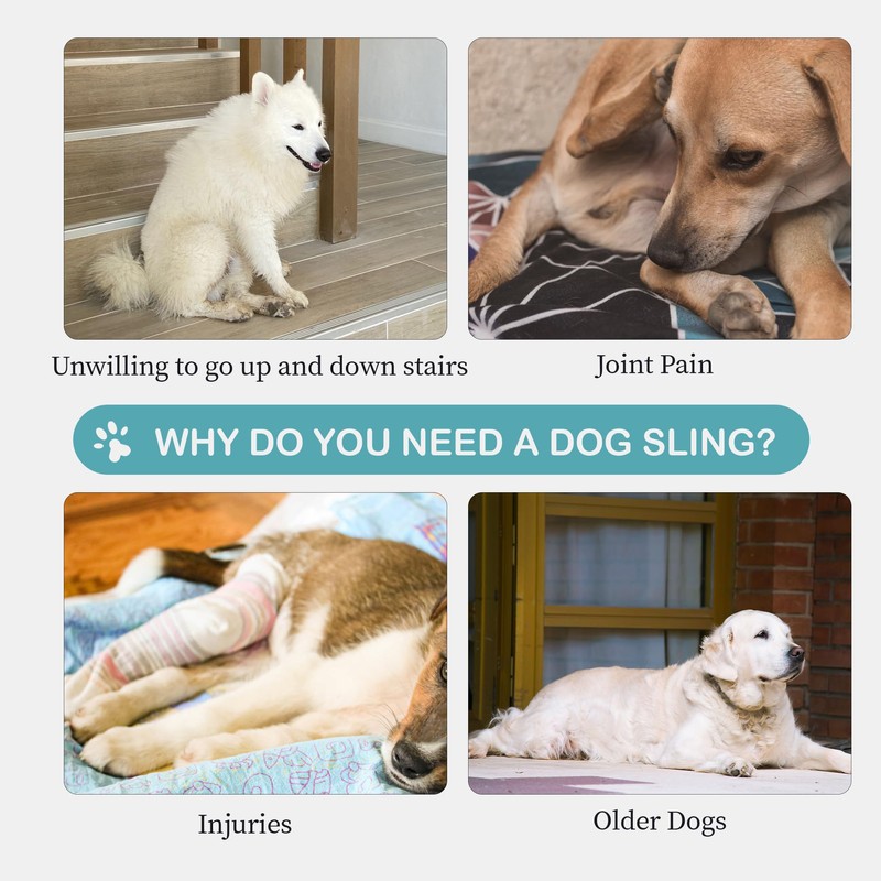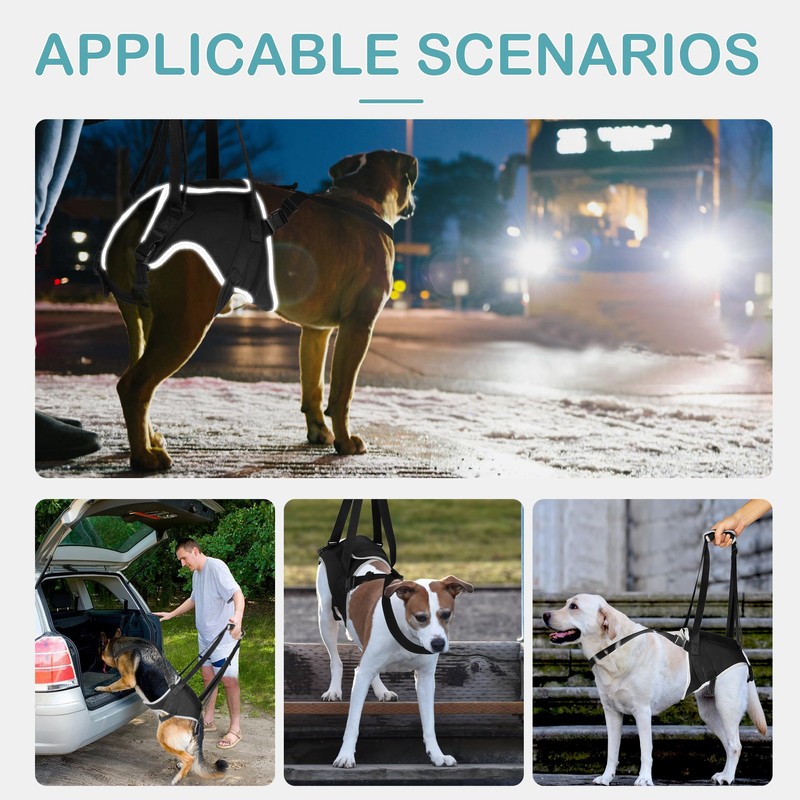 - 【Post-surgery recovery, dogs travel easily】Dog support harness aids dogs with weak hind legs during post-surgery recovery, offering effective assistance to help them move more easily, including climbing stairs and getting into vehicles. For dogs with joint problems or hip dysplasia, it reduces joint pressure, allowing for freer movement. Additionally, it helps dogs avoid falling in uneven environments while maintaining a natural walking posture.