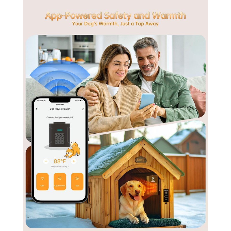- Thermostat & Smart Wifi Control: Designed as a reliable dog house outdoor heater chicken coop heater, this unit allows owners to adjust temperature remotely via a SmartLife APP, making it easier to keep pets safe and comfortable in all seasons. The thermostat supports a wide range from 45°F to 113°F, giving you flexibility to set the perfect warmth for your outdoor dog house or chicken coop while ensuring consistent performance and stable heating without needing to constantly check manually