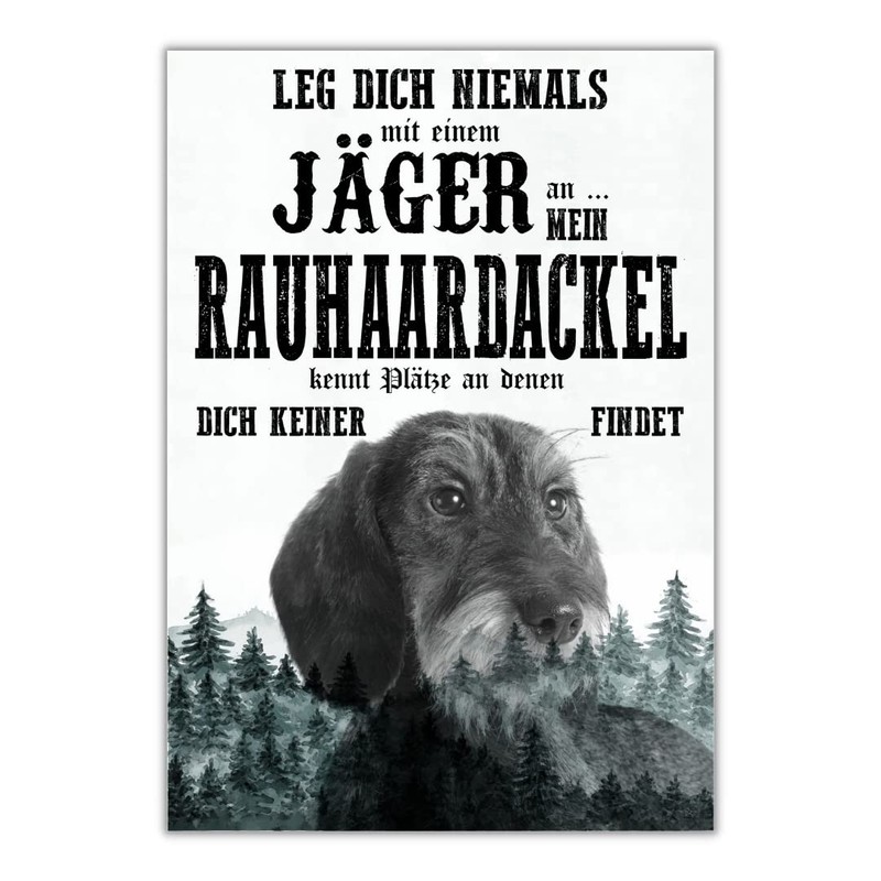 Dog Hunters Door Sign with German Text "Rauhaardack" [German Language] Dog Sign / Wall Art Gift Idea Funny Saying Dog Motif Aluminium Weatherproof Dog Sign