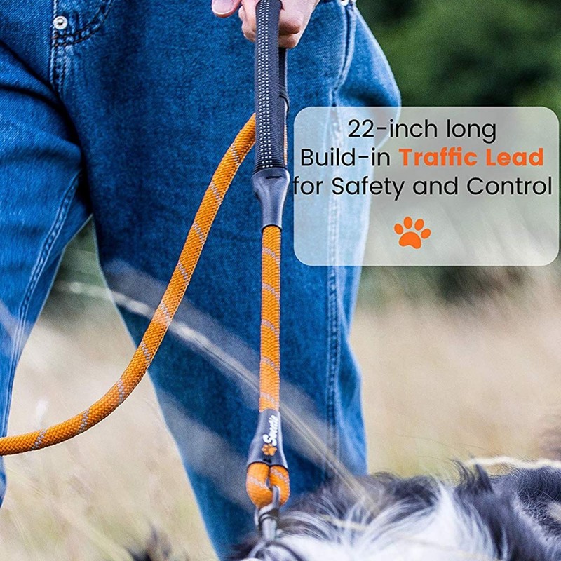 Dog Lead Rope Heavy Duty 2 Padded Handles 5ft for Medium Large Dogs Reflective Weatherproof
