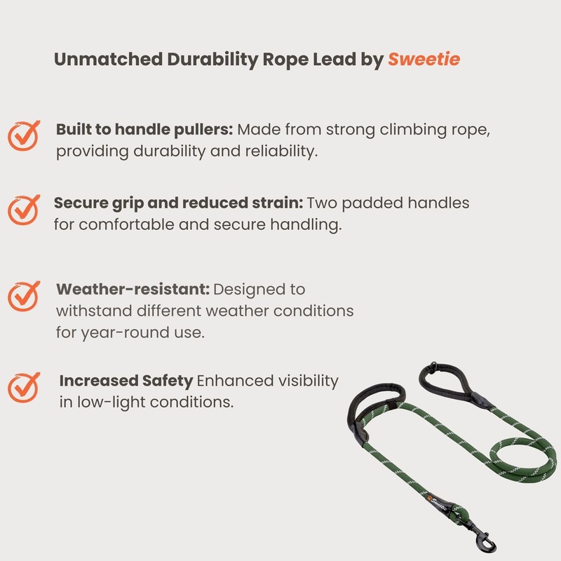 - SOLID AND DURABLE DESIGN - Made from a durable climbing rope material, our leash can handle your furry friend's pulling and tugging. It is also weather resistant, so you can take walks in the sun, rain, snow or a hike in the mountains.