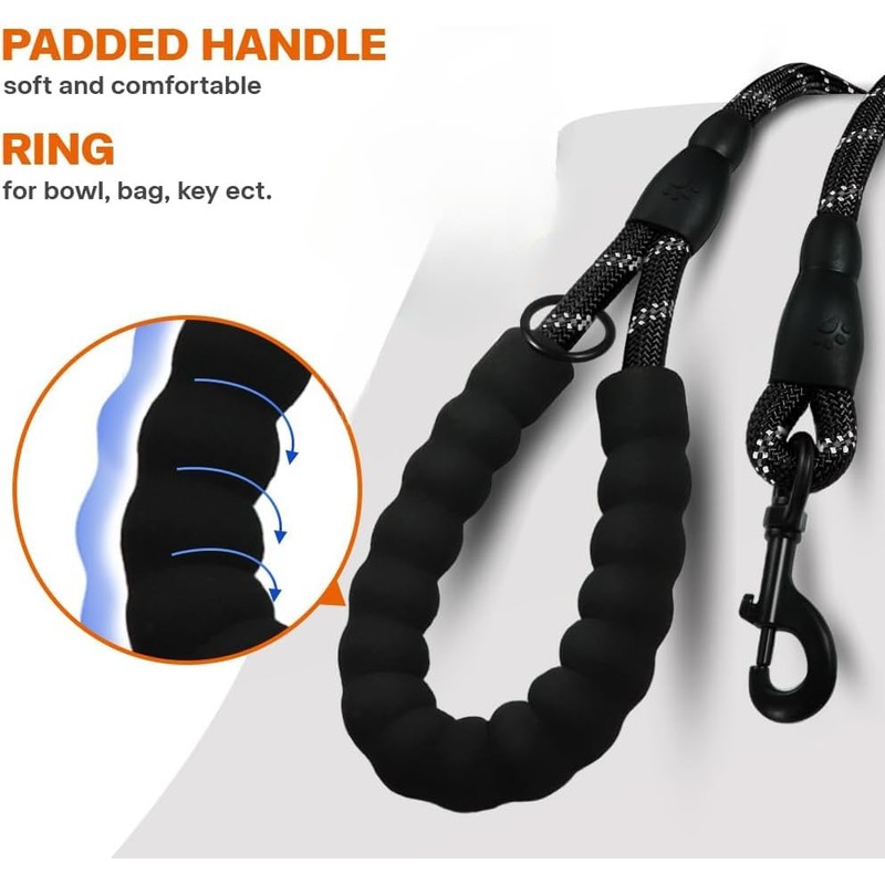 Dog Lead with Soft Padded Handle, 1.5m Reflective Dog Lead and Multi-Colour for Small Dogs, Highly Reflective Threads - Durable & Weather Resistant Climbers Rope for Dogs, Black