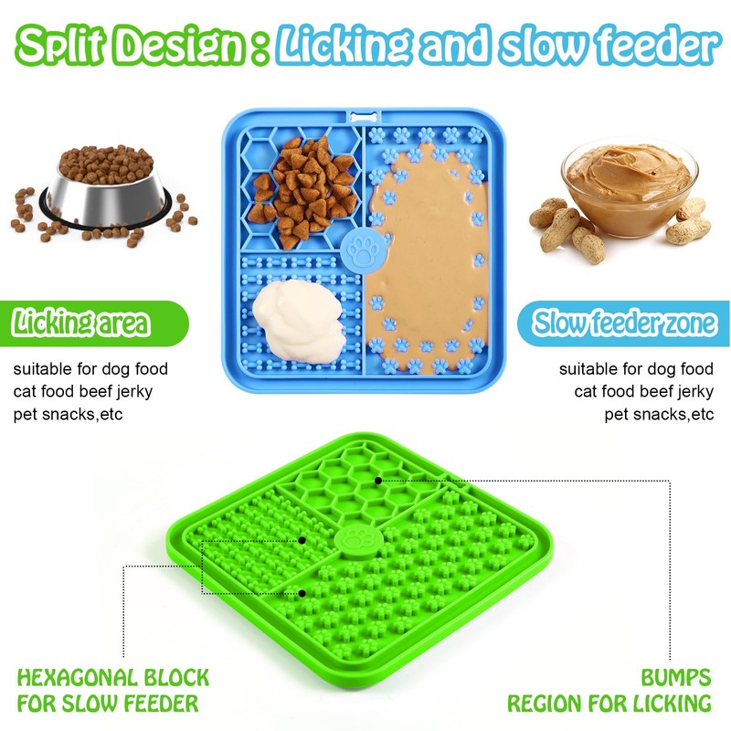 - MAKE BATH EASY AND FUN: Does your dog hate bathing? Now we have the product for you to solve these problems. Simply attach our lick pad to the bathroom wall, so your dog's attention is directed to the wall and he will no longer fight against bathing. It is not only suitable for bathing, but also for sanding and trimming pets. It can also be used as a slow feeding bowl to develop good eating habits.