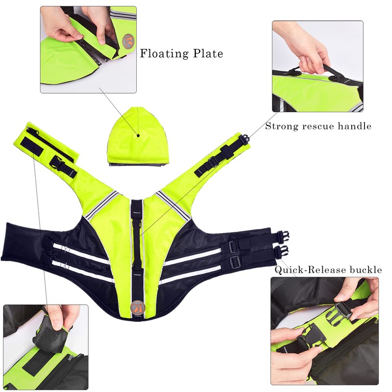 - 🐾 Safety First : The top rescue handle makes guiding your dog in and out of the water easy and provides quick rescue in emergencies. The reflective trim helps you track your dog in low visibility. Safety is our shared priority.