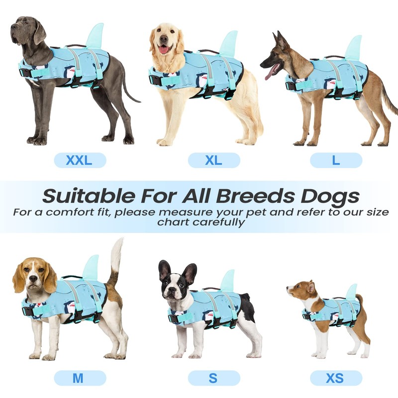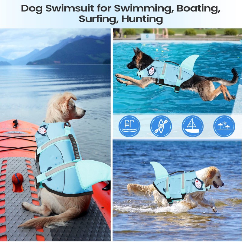 Dog Life Jacket, Large Dog Life Vest for Swimming Boating, Shark Life Jackets for Small Medium Large Dogs, Reflective Dog Lifesaver Life Preserver Swimsuit with Rescue Handle and High Buoyancy