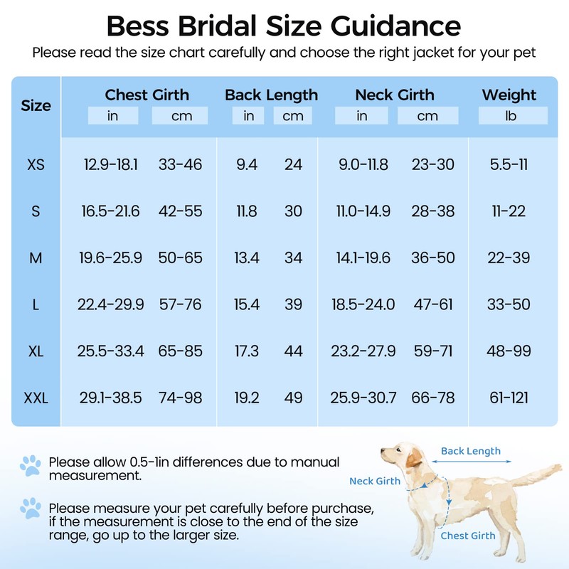 S: Back Length 11.8"/30 cm; Chest Girth 17.7"-21.7"/45-55 cm; Neck Girth 14.6"-16.9"/37-43 cm.