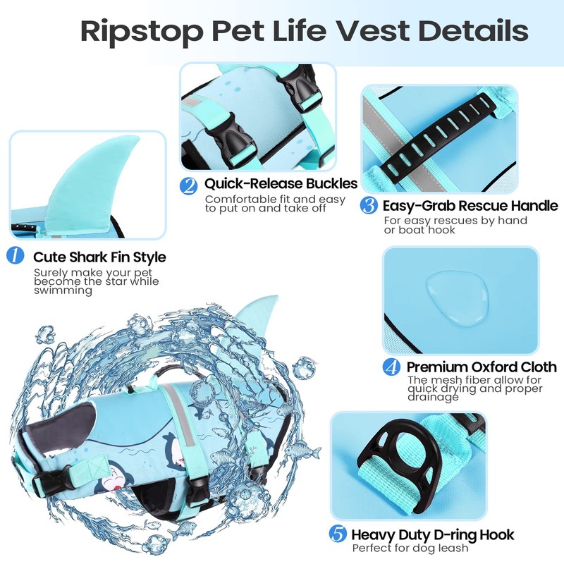 - Easy-Grab Handle: Our shark life jacket features a sturdy rescue handle on top for quick and easy grabbing, which is easy for you to pull your dog out of any emergency. Plus, the durable D-ring is suitable for various dog leash